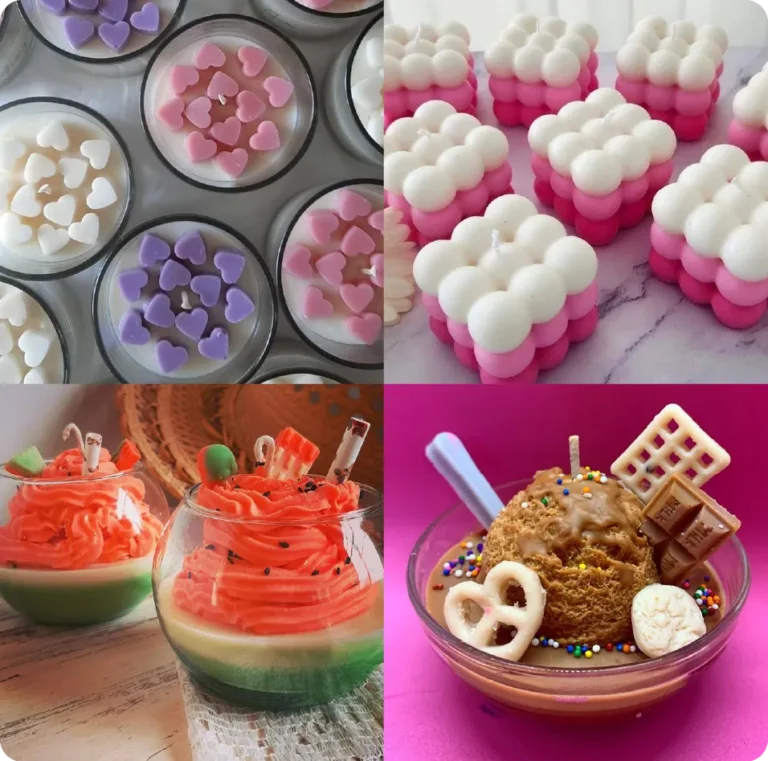 ✅ Aprenderás a combinar diferentes tipos de ceras (soya, abeja, coco, parafina, palma) y cómo lograr aromas duraderos, quemado uniforme y texturas ideales